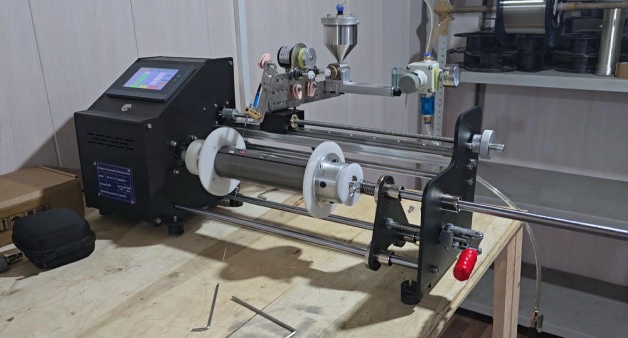 Данный станок оснащен лазером, который видит и точно позиционирует место головки! У данного станка изменено программное обеспечение (интеллектуальная настройка размеров катушки), он автоматически улавливает размеры, и с точностью до 0.03мм позиционирует катушку!